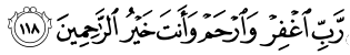 | হে আমার পালনকর্তা, ক্ষমা করুন ও রহম করুন। রহমকারীদের মধ্যে আপনি শ্রেষ্ট রহমকারী। |