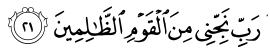 | হে আমার পালনকর্তা, আমাকে জালেম সম্প্রদায়ের কবল থেকে রক্ষা কর। |